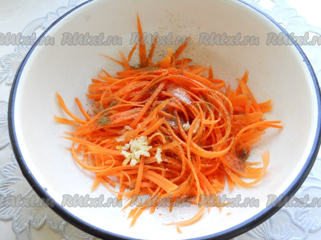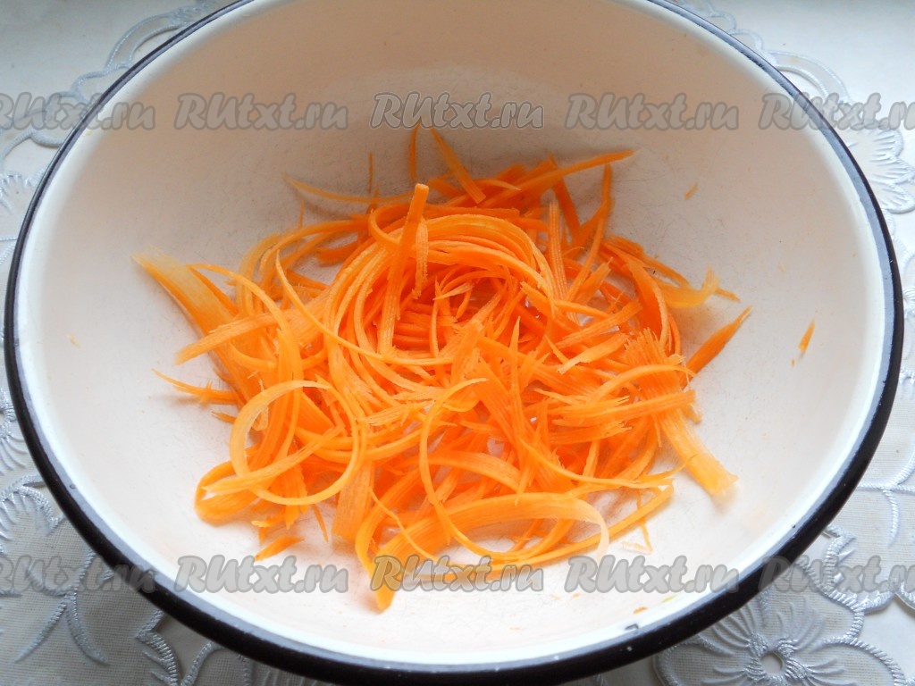 Морковь очистить и натереть на терке для корейской моркови.