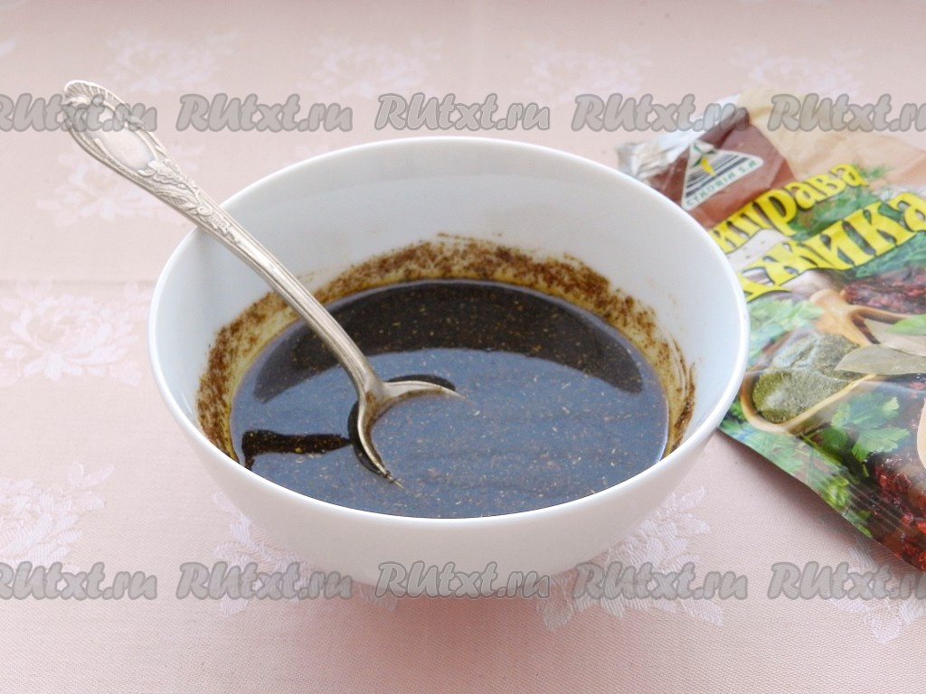 Смешать оливковое масло, бальзамический укус и сухую аджику.