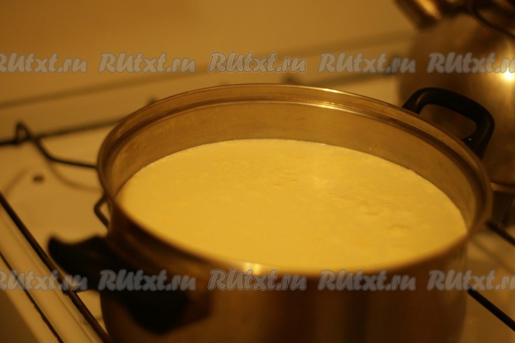 Нагреваем простоквашу на маленьком огне 10-15 минут.