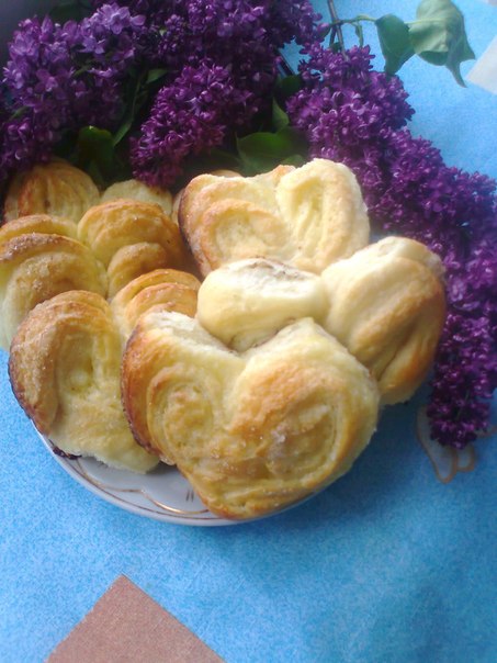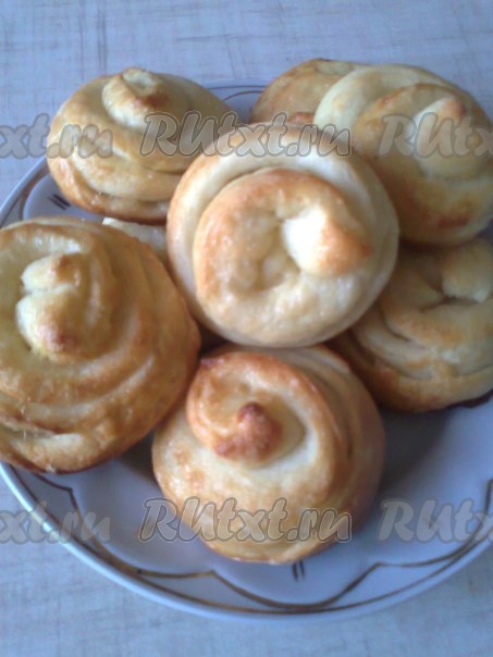 Получаются булочки в виде розочек.