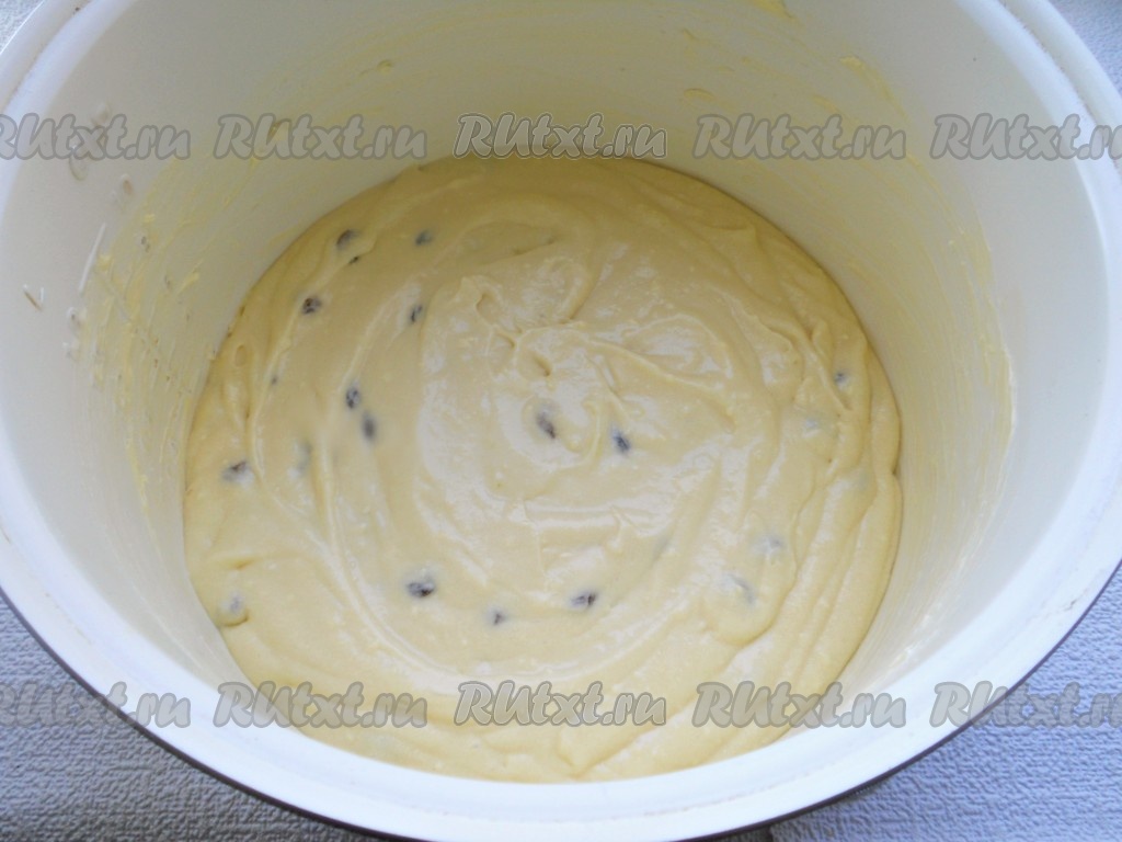 Тесто выложить в чашу мультиварки, хорошо смазанную сливочным маслом. Закрыть крышку мультиварки.