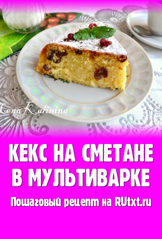 Предлагаю вам замечательный рецепт приготовления в мультиварке кекса, замешанного на сметане. Кекс получается очень вкусным, с влажной и плотной структурой, сладким и ароматным. Подайте эту выпечку к чаю или кофе и ваши родные будут в восторге!