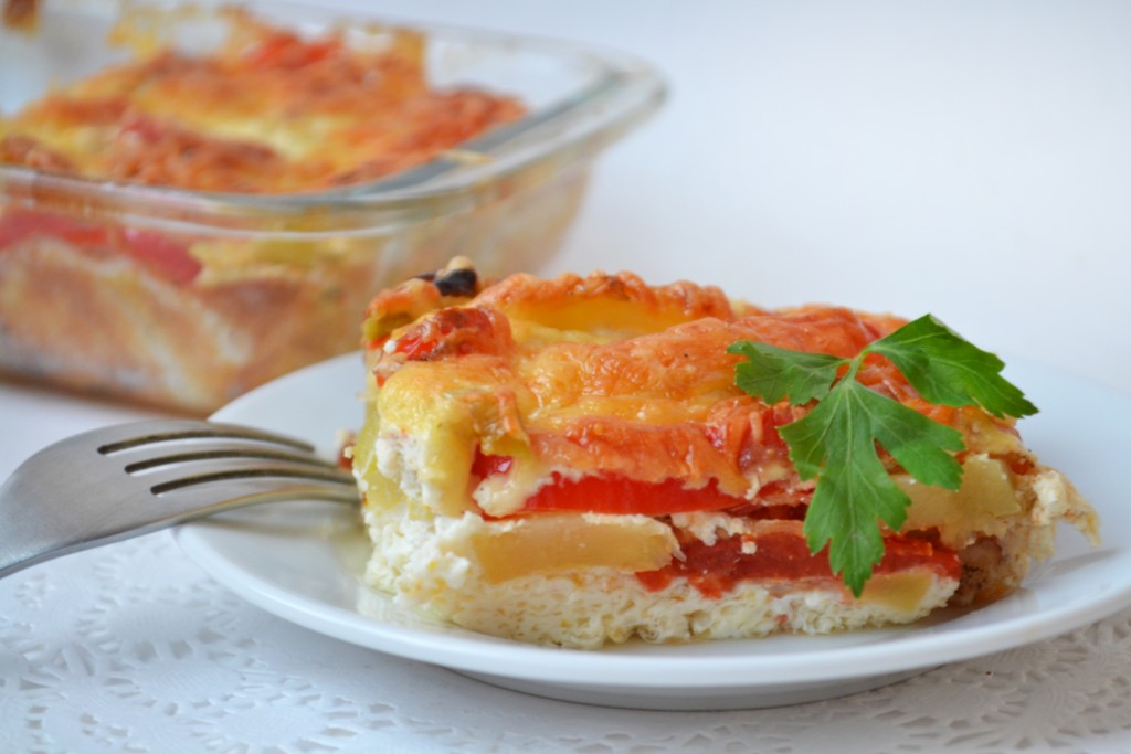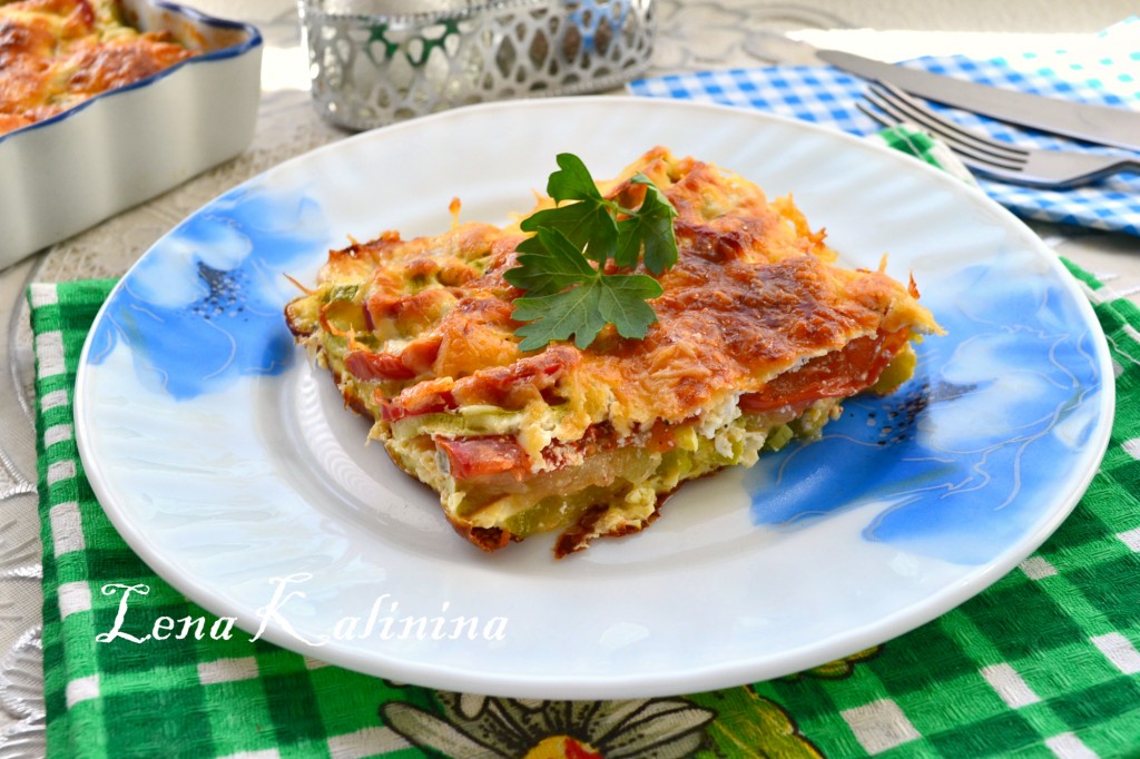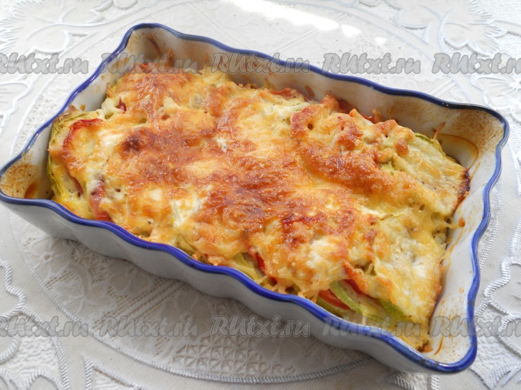 В духовке, разогретой до 180 градусов, готовить запеканку с кабачками, помидорами и перцем минут 30-35. Овощи должны легко прокалываться ножом, сверху они будут покрыты румяной корочкой из сыра и яиц.