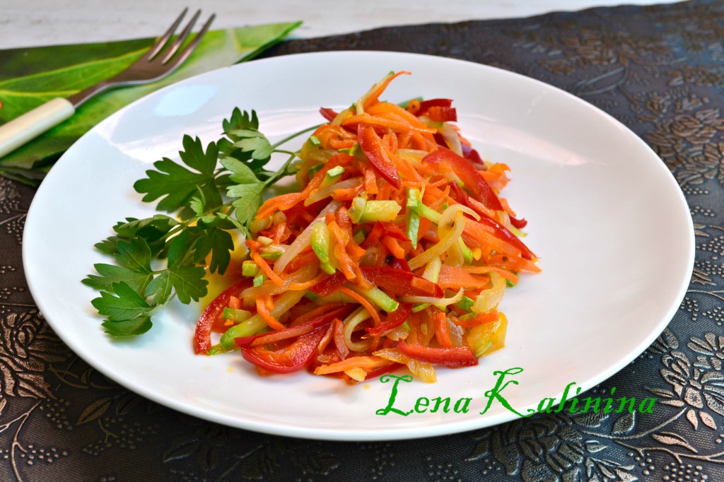 Вот и все! Замечательный, очень красочный и вкусный гарнир из жареных кабачков с морковью, луком и болгарским перцем готов! Можно подать и в горячем, и в холодном виде с мясом или рыбой.