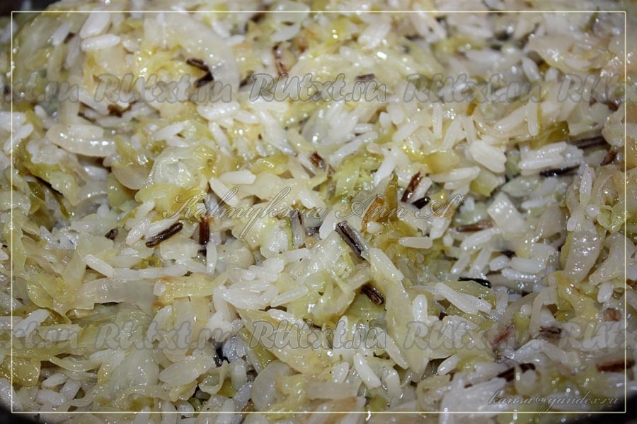 Начинка для пирога с капустой и рисом готова.