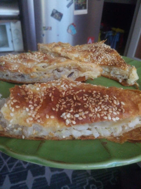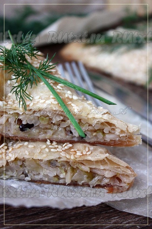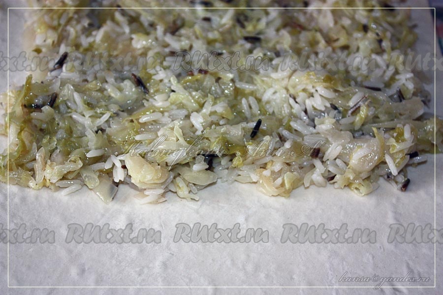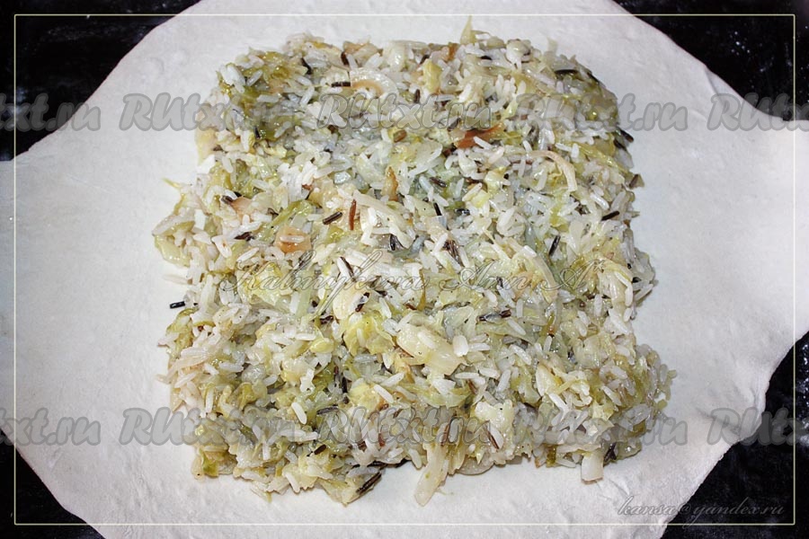 Пирог с капустой и рисом из готового слоеного теста на скорую руку - вкусно и просто!
