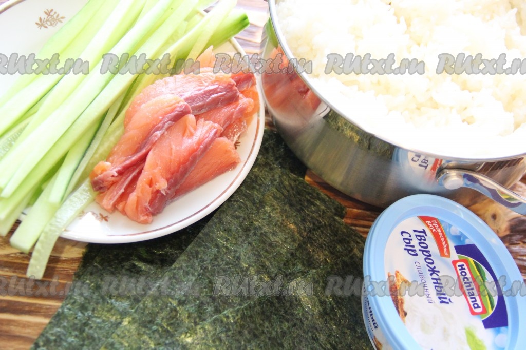 Роллы в домашних условиях сделать довольно просто. Все продукты для приготовления можно купить в магазине в отделе китайской кухни. Для начинки можно использовать рыбу, креветки или крабовое мясо. Можно добавить огурец или авокадо, а творожный сыр или брынза придаст роллам особую сливочную нотку. Итак, готовим в домашних условиях очень аппетитные и вкусные роллы с творожным сыром.