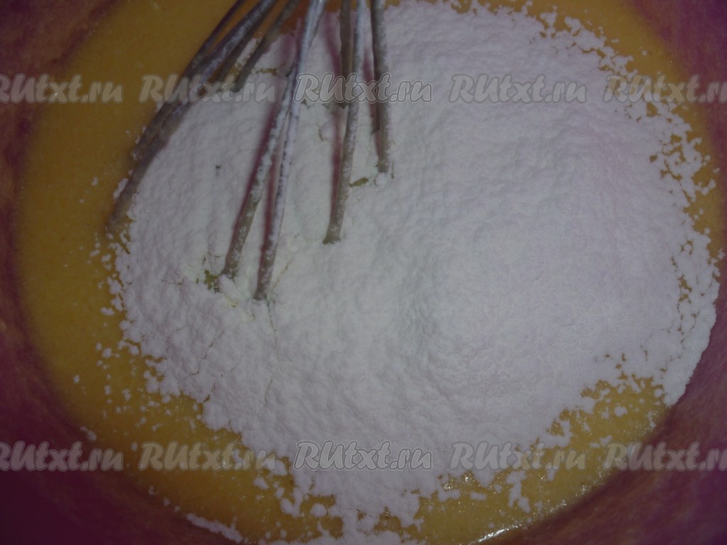 Постепенно всыпать муку, перемешать до однородности теста.