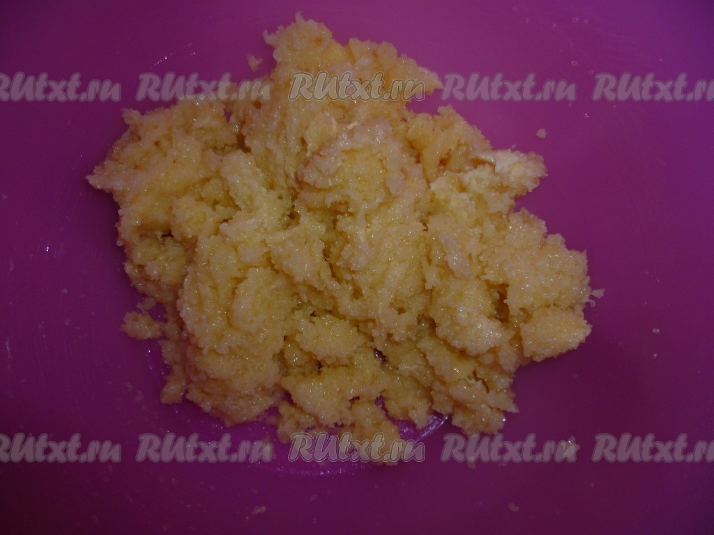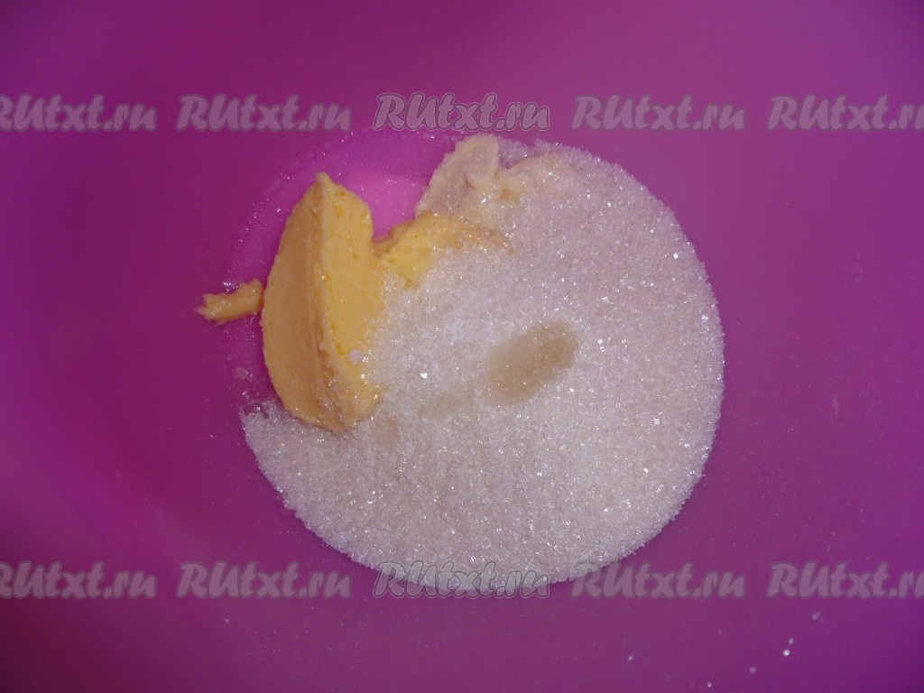 Масло комнатной температуры (мягкое) растереть с сахаром и ароматизатором (я использовала "дюшес").