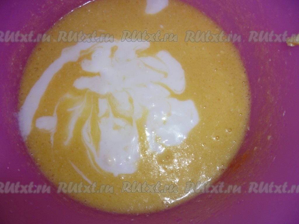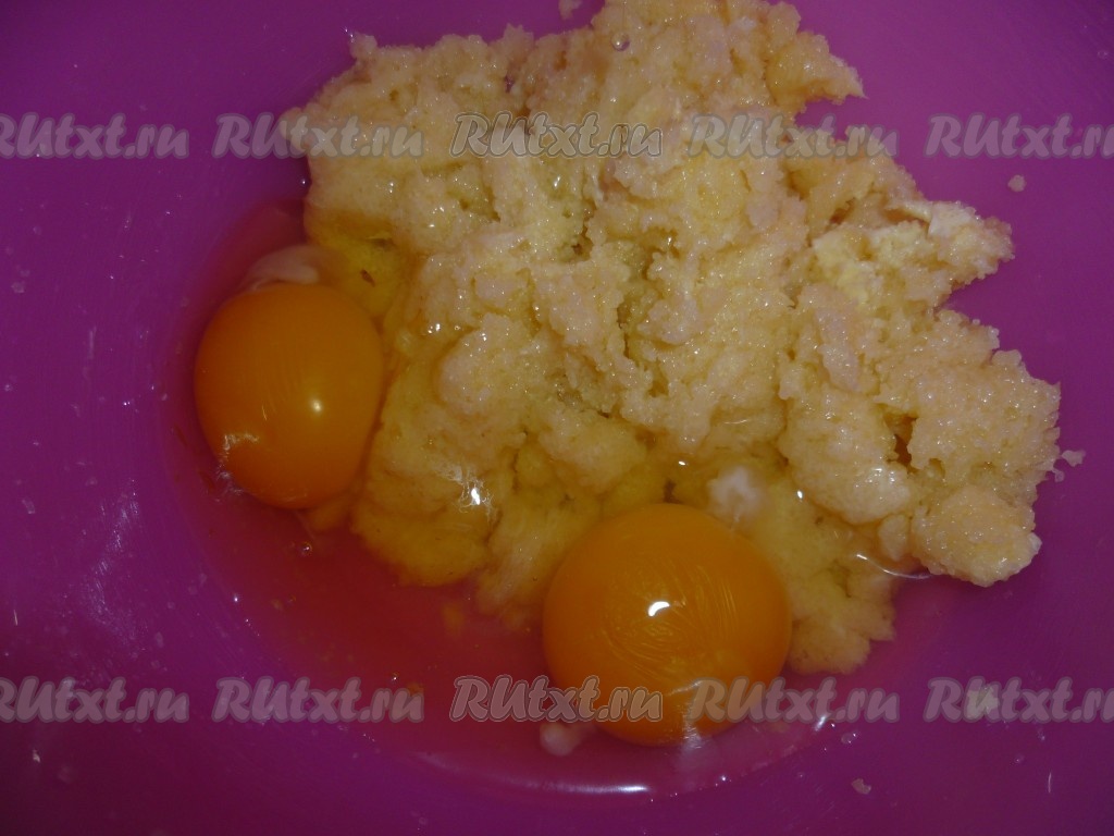 Вбить два яйца и тщательно перемешать венчиком.