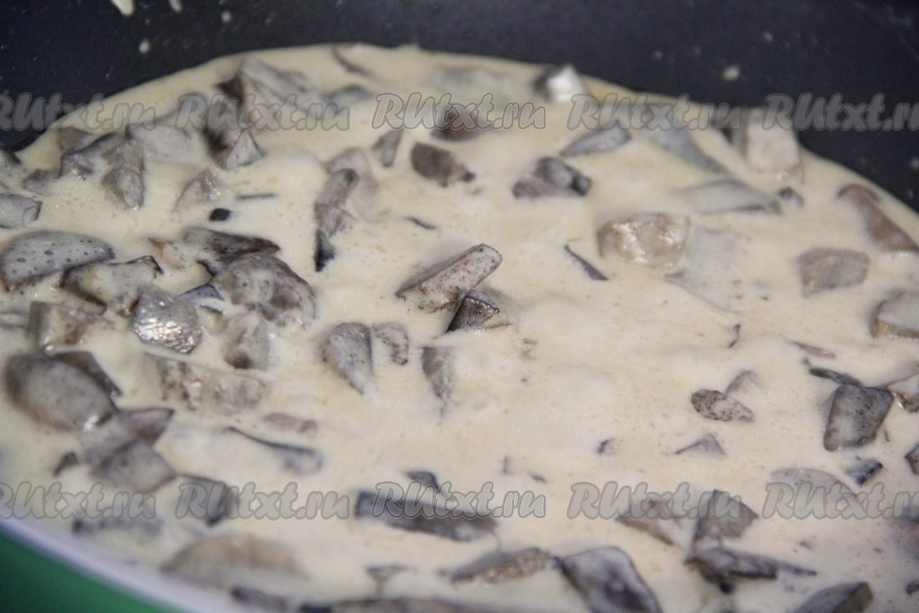 Вот такие грибы, приготовленные с сыром и сметаной, получились у меня.