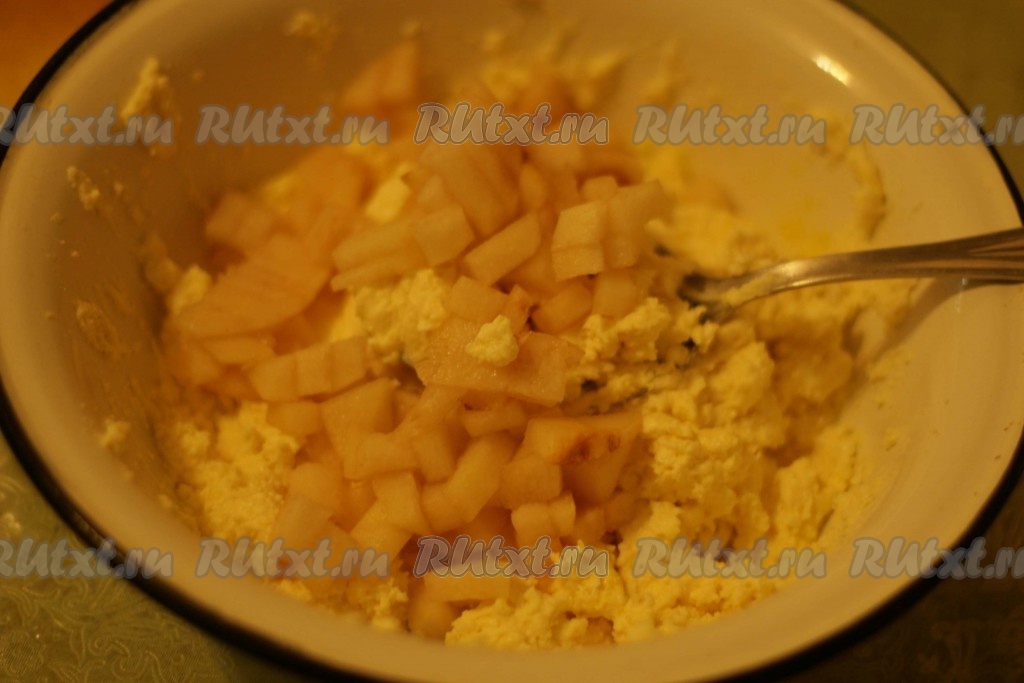 В творожную массу добавляем грушу.