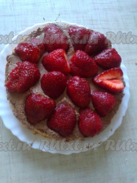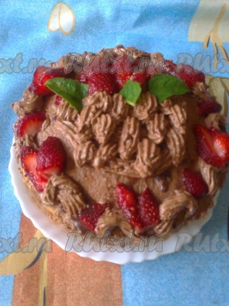 Накрыла вторым коржом, украсила клубникой, кремом и получился небольшой,