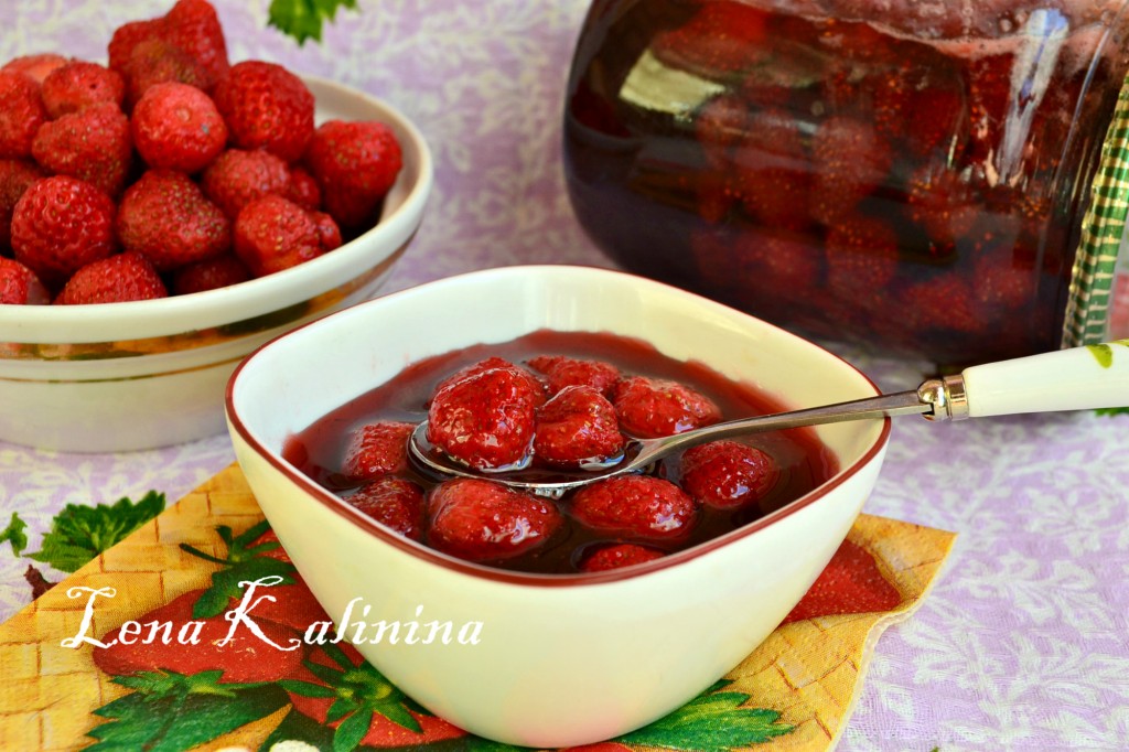Предлагаю вам сварить клубничное варенье с целыми ягодами по этому и простому, и очень удачному рецепту проверенному временем. Зимой такое лакомство можно подавать с блинчиками, оладьями, готовить из него компоты, кисели и соусы. В этом варенье ягоды клубники получаются целыми, как говорится, ягодка к ягодке, поэтому оно отлично подходит для того, чтобы начинять им пироги и пирожки. Да и просто можно намазать варенье на ломоть белого хлебушка и подать с молоком. Очень вкусно! Из данного количества продуктов получится одна пол-литровая баночка варенья. Для приготовления такого варенья лучше использовать мелкую клубнику.