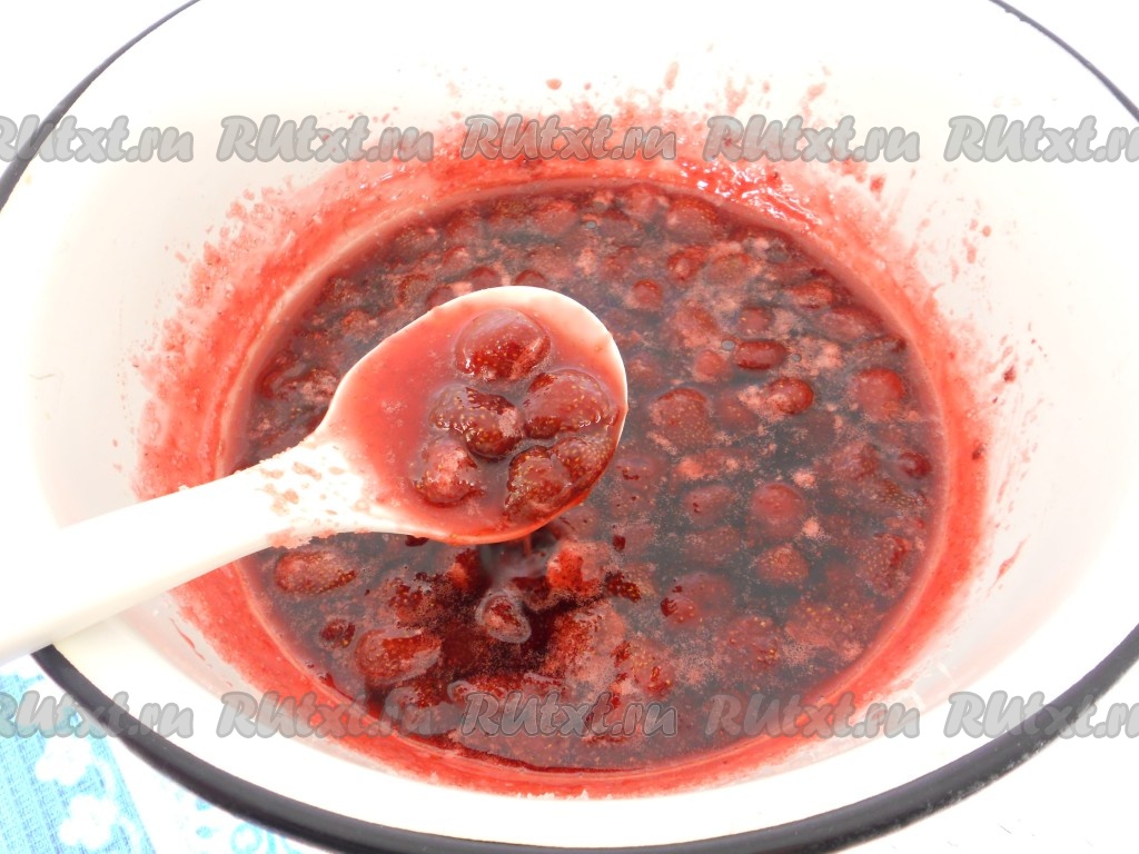 Аккуратно перемешать ложкой (деревянной или пластиковой) клубнику с сахаром и оставить на 3-4 часа для того, чтобы ягоды пустили сок.