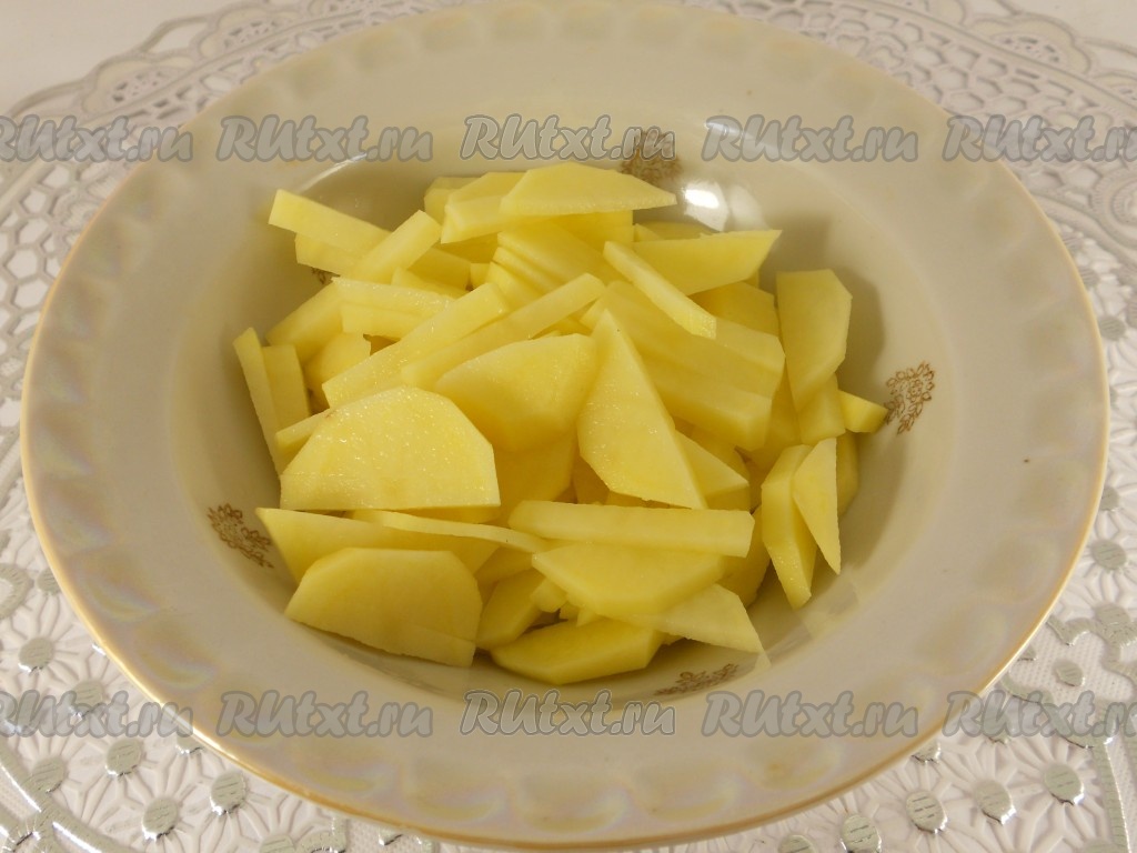 Картофель очистить и порезать небольшими кусочками.