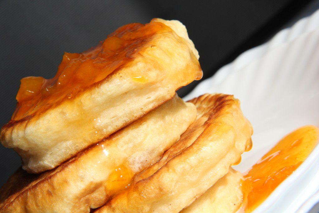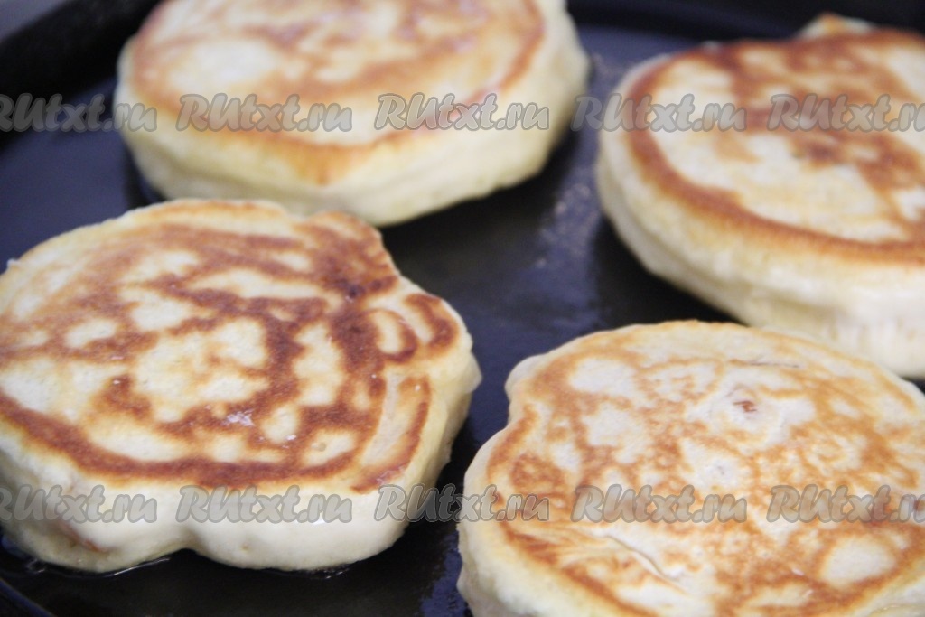 Пышные оладьи, приготовленные по этому рецепту из простокваши, подать к столу с пылу с жару.