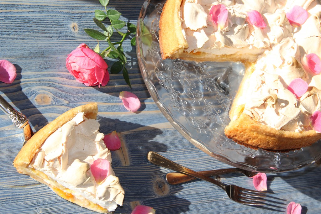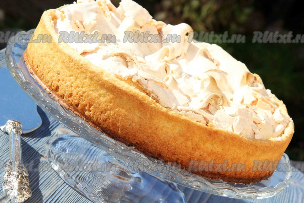Хочу поделиться рецептом приготовления вкусного и красивого песочного пирога с творогом и безе. Такой пирог можно приготовить на праздничный стол или просто к чаепитию в кругу семьи. Выпечка получается очень вкусной. Начинку я готовила из творога, банана и абрикосового конфитюра. Творог можно использовать пастообразный или зерновой, конфитюр можно заменить любым густым джемом. Верх этого песочного пирога покрыт нежным, воздушным безе, что делает выпечку очень нарядной. Обязательно приготовьте для близких такой прекрасный пирог, он не сможет не понравиться.