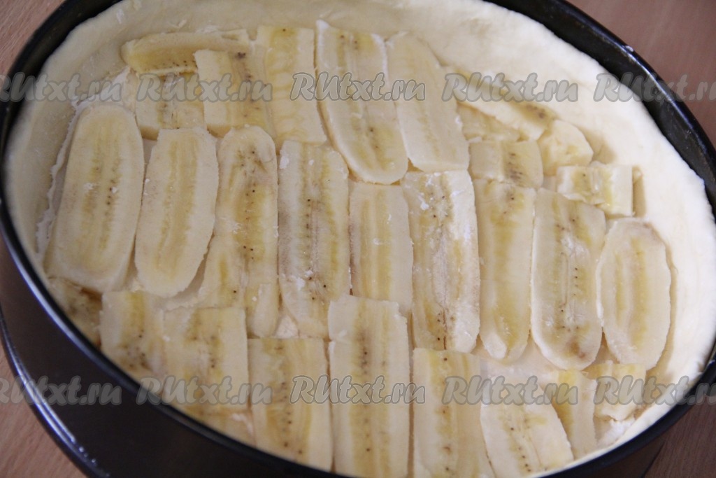 Затем выложить бананы. Я нарезала бананы тонкими слайсами, но можно нарезать и кружочками.
