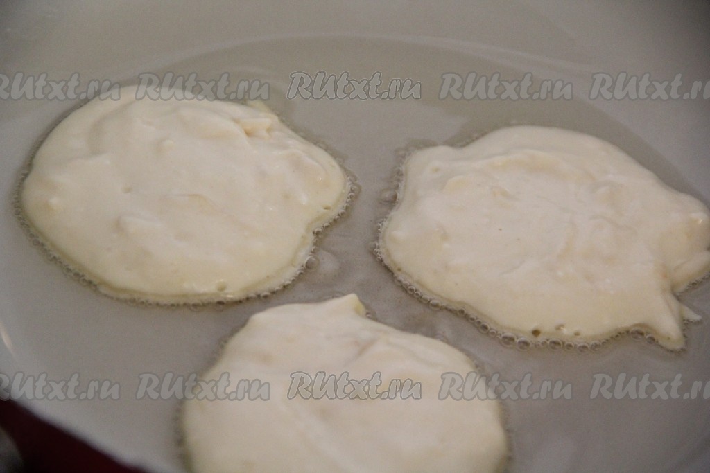 На сковороду с разогретым растительным маслом выкладывать по 1 столовой ложке теста.