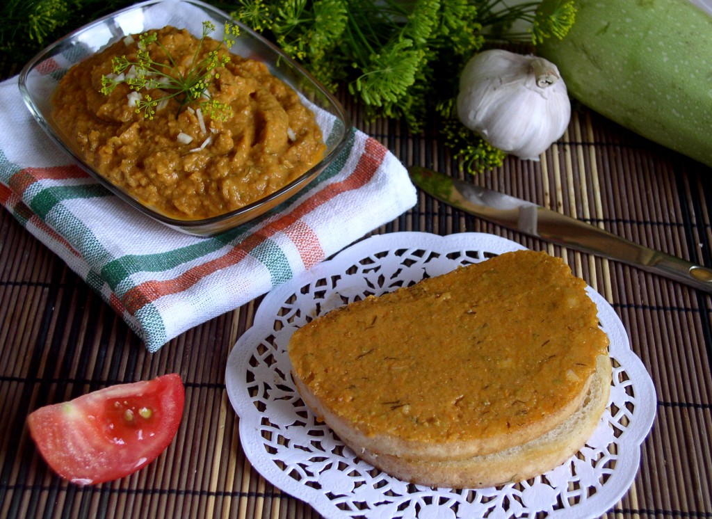 Тушеные овощи и обжаренные кабаки лучше пюрировать блендером, но можно и пропустить через мясорубку. Это невероятно нежно и вкусно! Смесь раскладывают в банки и стерилизуют: пол-литровые банки - 20-25 минут, литровые - 35-40 минут. Затем закатывают. Кабачковая икра по консистенции получилась кремовой, нежной и благодаря взбиванию блендером приобрела характерный оранжевый оттенок, как и у икры, купленной в магазине. Ломтики хлеба, подсушенные в тостере или на сковороде с маслом, натереть чесночком и намазать икрой. Или натереть свежего чесночку в готовую икорочку и подать к греночкам. Ох, вкусно!
