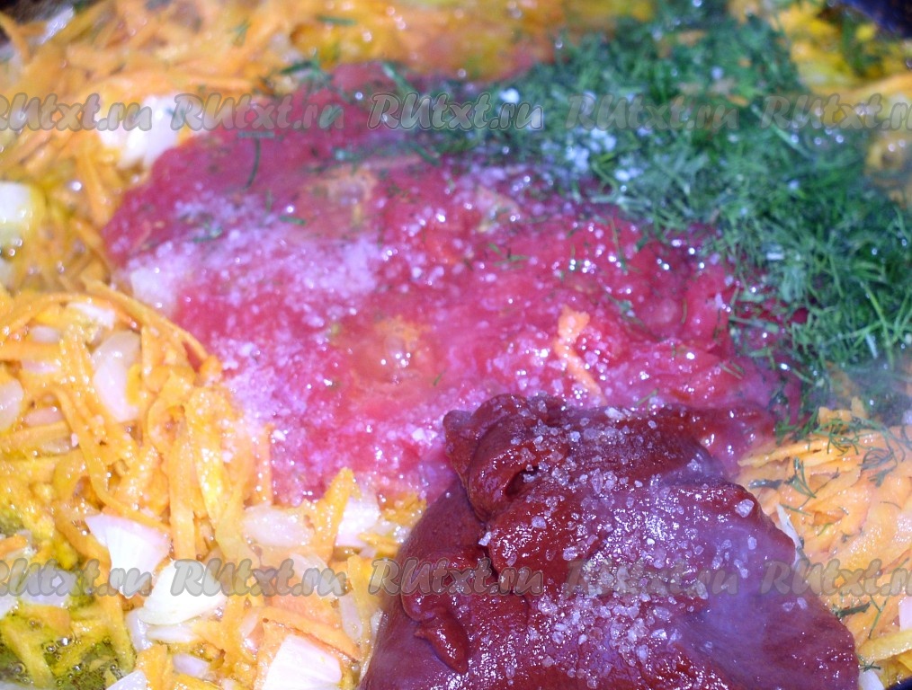 Кабачок нарезать кольцами или пластинками, морковь натереть, лук мелко нарезать кубиком. Обжарить нарезанные кабачки на растительном масле. Отдельно на масле обжарить, помешивая, нарезанный лук, натертую морковь и корень петрушки. Затем добавить натёртые помидоры, томатную пасту, соль, сахар, пряности по вкусу (я советую взять из специй черный и красный молотые перцы), порубленный укроп (по моему, укроп и кабачки - самое вкусное сочетание из всех!). Перемешать и тушить на на слабом огне до готовности.