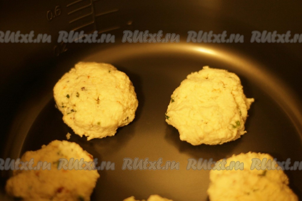 Руками сформировать сырники и выложить в форму для выпекания, слегка смазанную маслом.