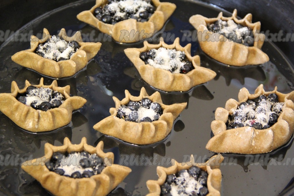 Выложить получившиеся ржаные калитки на противень, предварительно смазанный растительным маслом. Ягоды по желанию можно присыпать сахаром. Поставить противень с пирожками в разогретую духовку и выпекать примерно 15 минут при температуре 180-200 градусов.