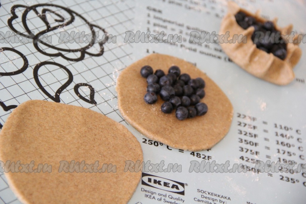Разделить тесто на небольшие части. Каждую часть теста раскатать скалкой в круг. На середину теста выложить ягоды. Ягоды предварительно помыть и обсушить. Края теста защипнуть (как на фото). Форму калиткам можно придать круглую или овальную.