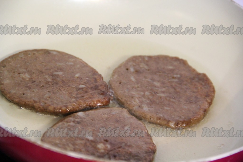 В сковороду влить растительное масло и хорошо разогреть. Выкладывать в сковороду по 1 столовой ложке печёночной массы, формируя круглые оладьи.