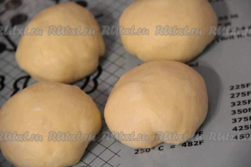 Подошедшие булочки смазать молоком или желтком и поставить в разогретую духовку.