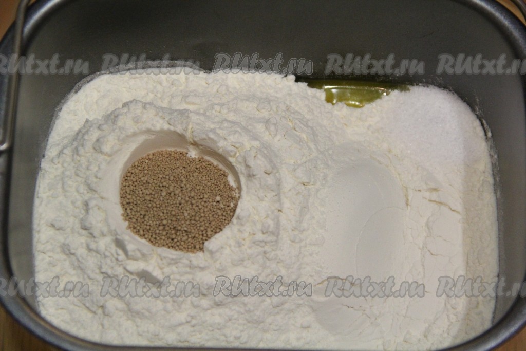 Всыпать просеянную муку, соль и сухие дрожжи. Выставить режим "Замес теста". У меня этот режим занимает 1 час 30 минут.