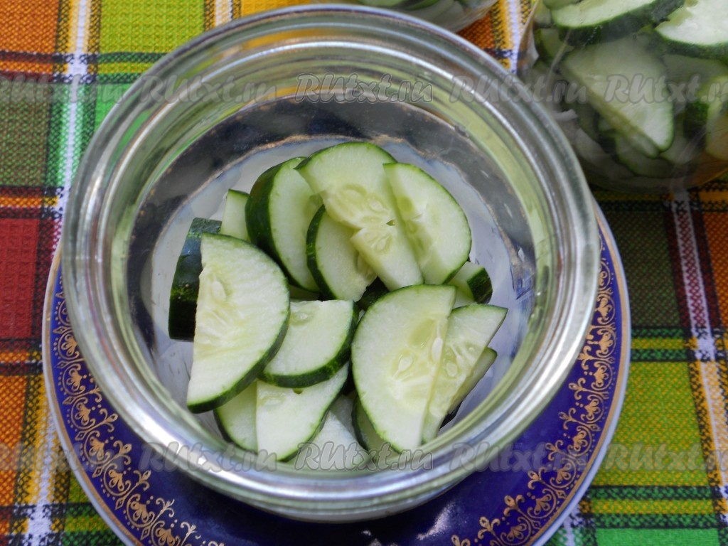 Следующим слоем выкладывать свежий огурчик, нарезанный полукружочками.