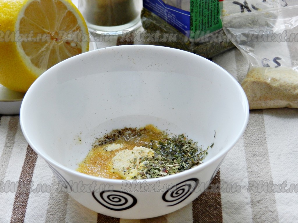 Соединить соль, итальянские травы, сухой чеснок, черный молотый перец.
