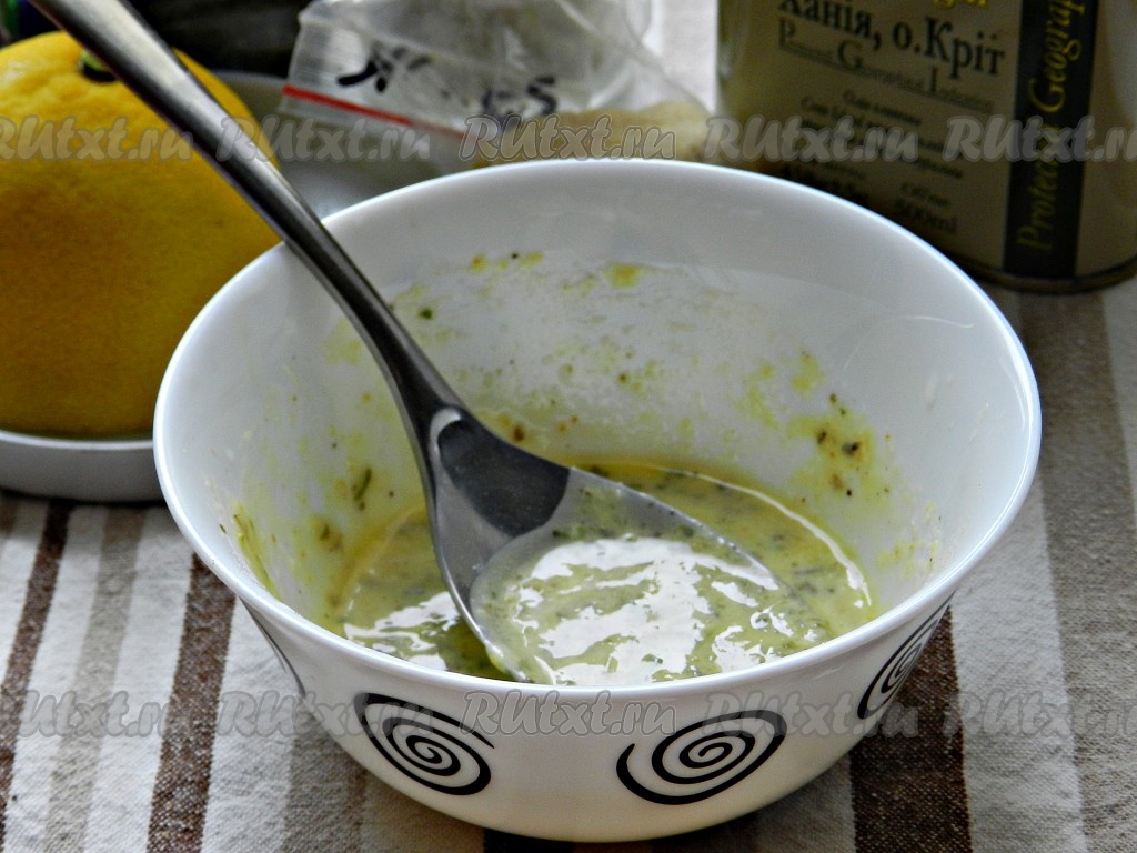 Добавить лимонный сок, растопленное сливочное масло, оливковое масло и тщательно перемешать полученную смесь.