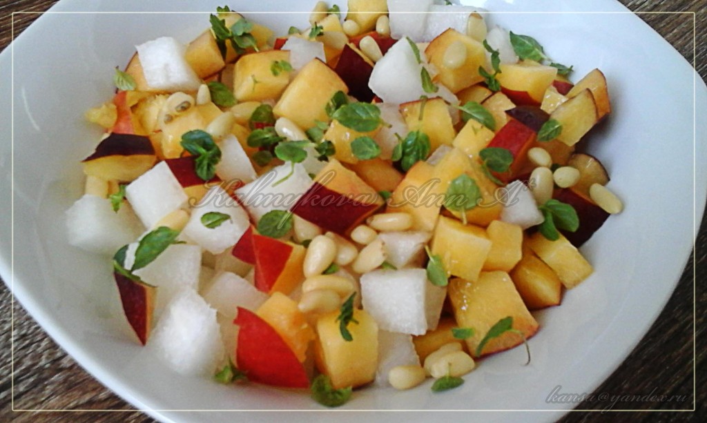 Для приготовления салата из дыни и нектарина (на 1 порцию) потребуется: