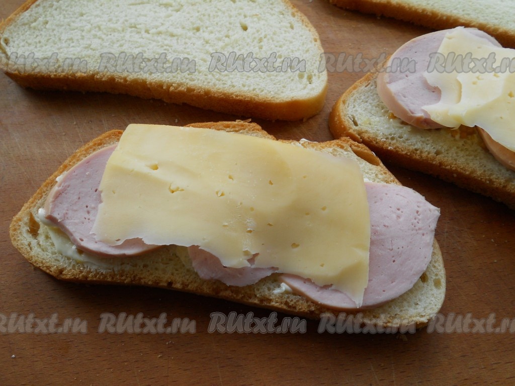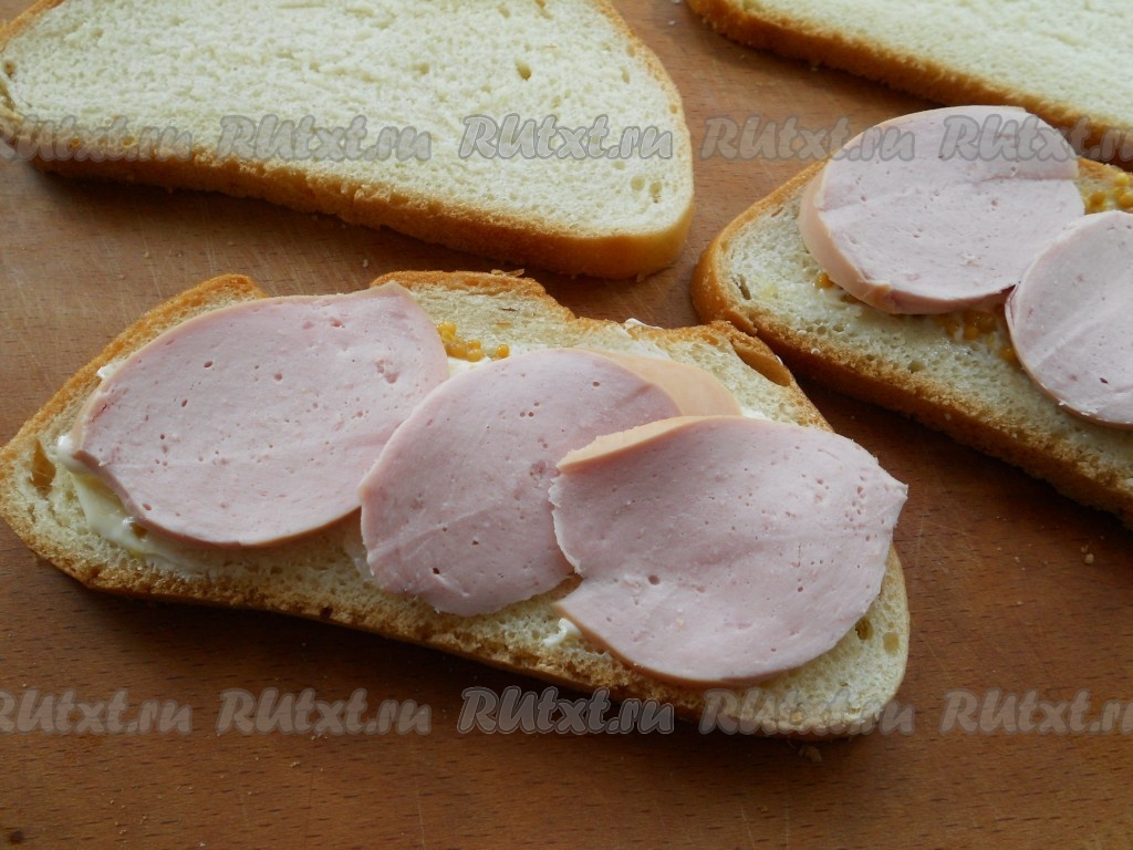 Накрыть бутерброды оставшимися ломтями батона.