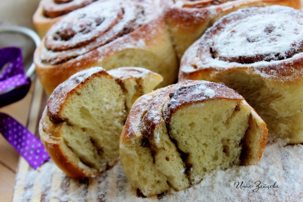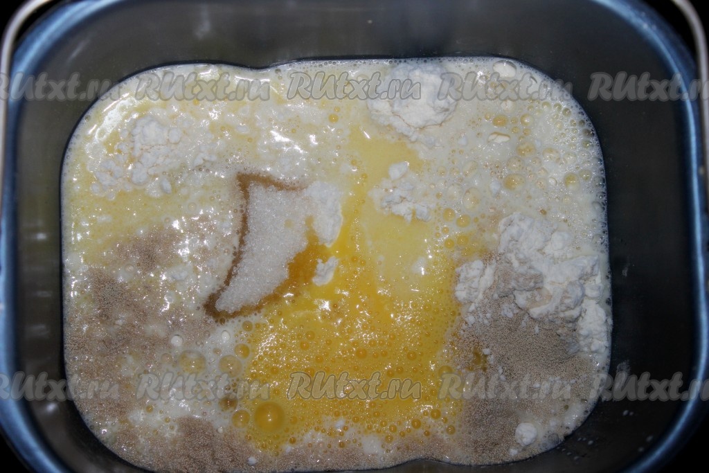 *Для замеса теста вручную необходимо: Дрожжи всыпать в теплое молоко с 1 чайной ложкой сахара. Дать постоять, пока не образуется пена. Взбить яйца с оставшимся сахаром, ванильным сахаром и ввести в дрожжевую смесь. Смешать муку с солью. Добавить молоко с дрожжами и яйцом, смешать. Постепенно ввести растопленное сливочное масло и замесить эластичное тесто.