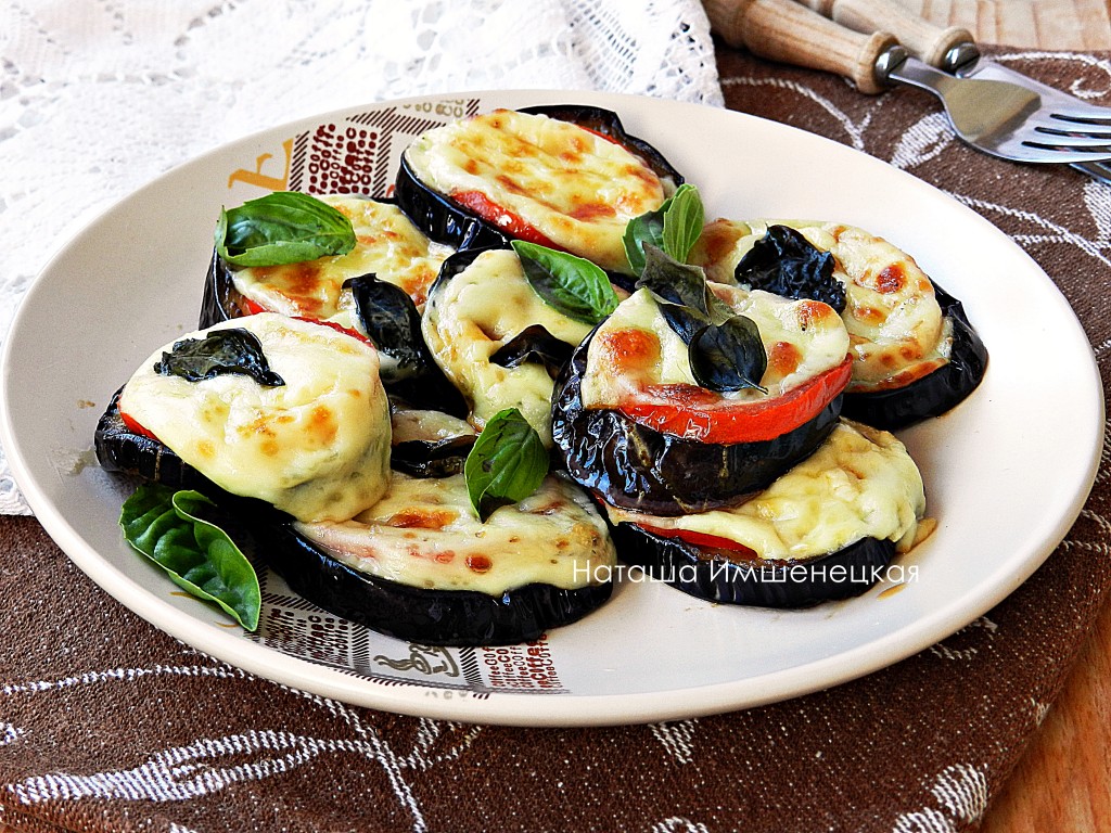 Жареные баклажаны с помидорами и сыром - замечательное, очень вкусное блюдо. На мой вкус - это идеальное сочетание продуктов. Если вы не хотите обжаривать баклажаны, вы можете их запечь.
