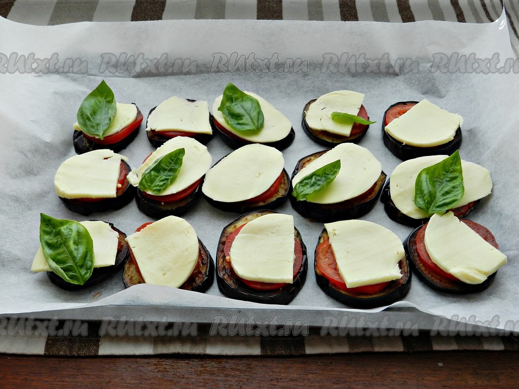 Вкусная закуска - жареные баклажаны с помидорами и сыром - готова.