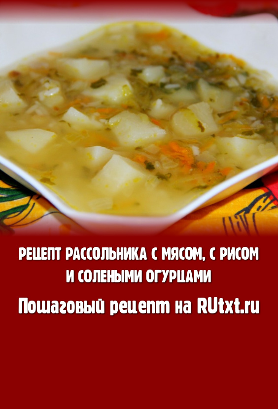 Некоторое время назад рассольник был одним из самых популярных супов для многих семей. Сейчас, к сожалению, он стал незаслуженно редко появляться на нашем столе. Поэтому сегодня я решила рассказать о том, как сварить рассольник с мясом, с рисом и солеными огурцами. Этот рецепт станет настоящей находкой, если Вашим близким приелись привычные борщи и бульоны. Сытный, вкусный, аппетитный супчик не сможет оставить равнодушными ни взрослых, ни детей. Попробуйте приготовить и Ваши близки скажут спасибо за такой эксперимент!