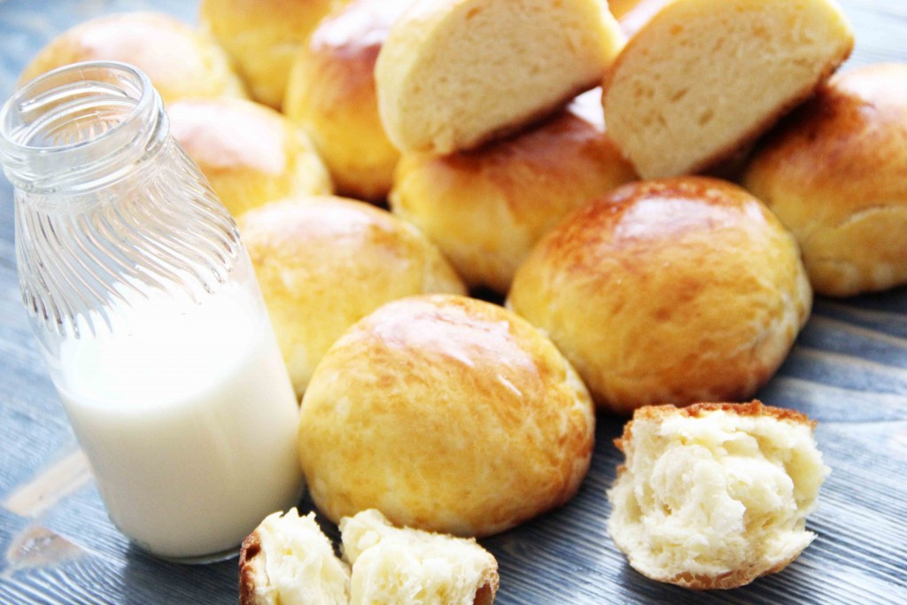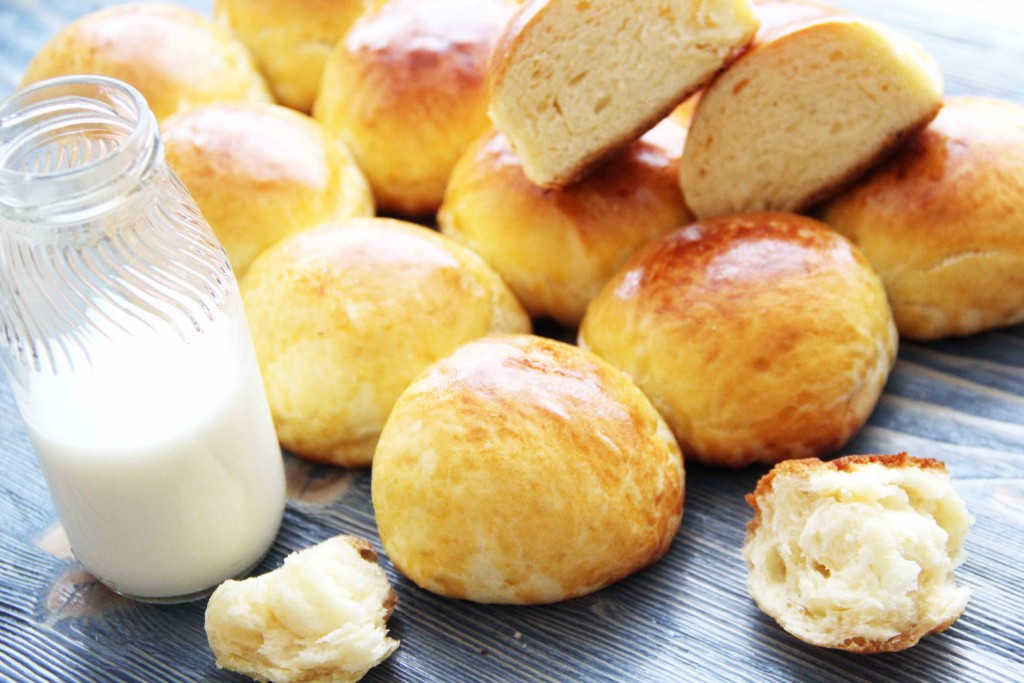 Готовые булочки слегка остудить и снять с противня. Наши вкусные, ванильные булочки, так напоминающие те, что я покупала в детстве по 9 копеек, можно подавать к столу. Уж очень они хороши с холодным молочком.