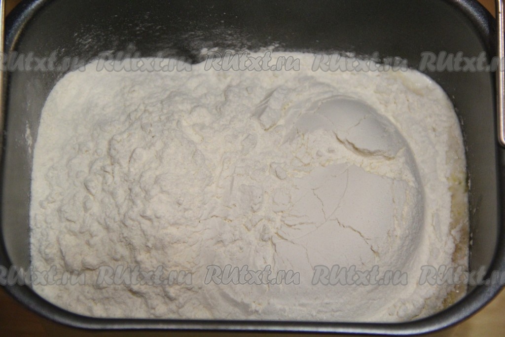 Затем всыпать просеянную муку и добавить соль. Выставить режим "Замес теста". У меня этот режим занимает 1,5 часа.
