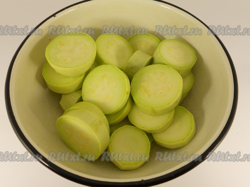Кабачки помыть, нарезать кружочками, толщиной около 1-1,5 см.