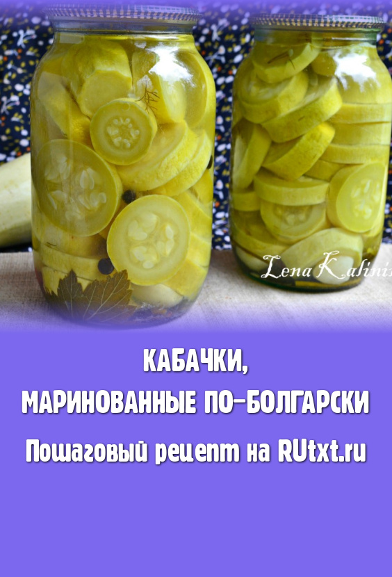 Кабачки, маринованные по-болгарски, - это бесподобная заготовка на зиму. Кабачки получаются хрустящими, кисло-сладенькими и очень вкусными. Очень похожи на магазинные кабачки советского периода, если кто вспомнит. Советую, обязательно приготовьте! Расчет продуктов дан на 2 литровые баночки кабачков.