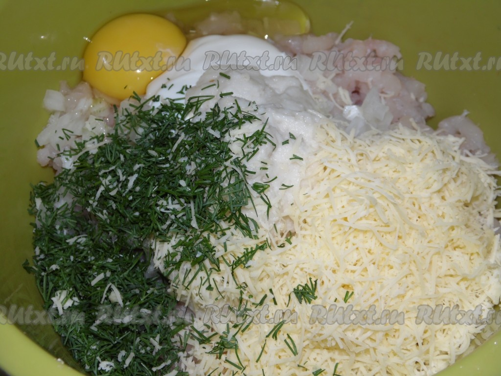 Мякиш булки замочить в тёплой воде или молоке минут на пять и, отжав от лишней жидкости, добавить к рыбному фаршу вместе с мелко нарезанной зеленью, яйцом, натёртым на мелкой тёрке сыром, солью и специями.