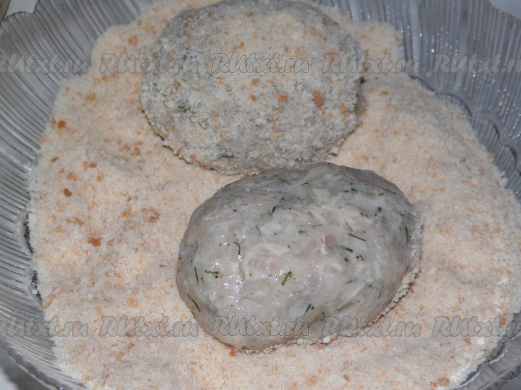 Хорошенько перемешать фарш до однородной массы, сформировать рыбные котлеты и обвалять в панировочных сухарях.
