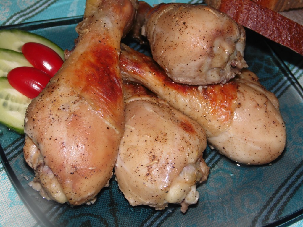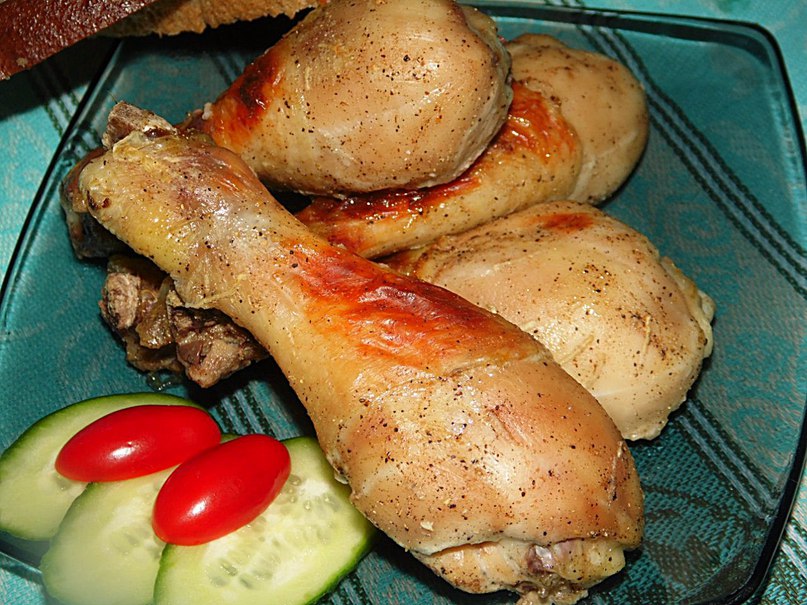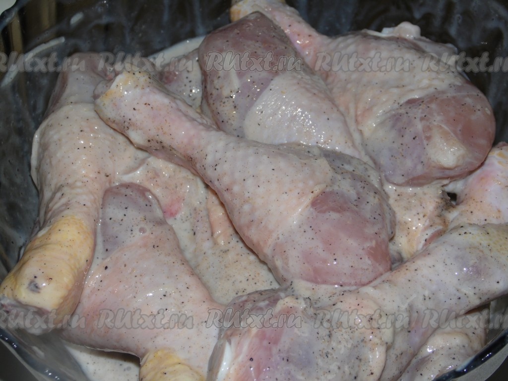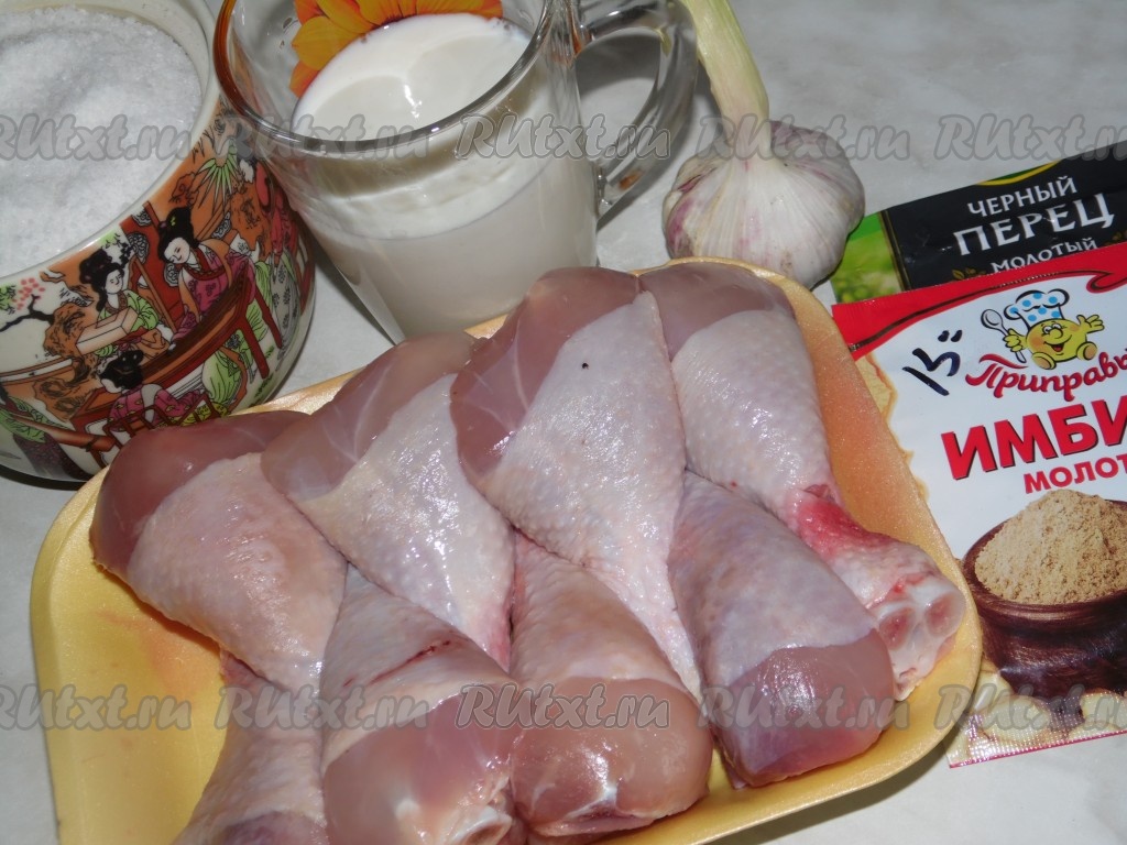 Аппетитные, сочные куриные ножки, запеченные в кефире в духовке, подавать со свежими овощами и гарниром.