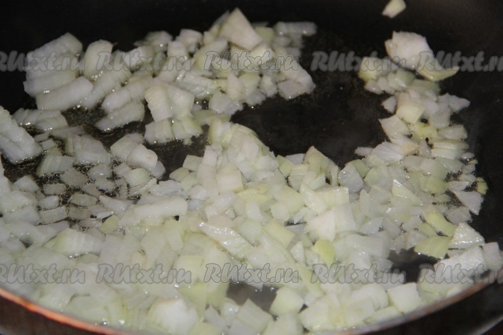 Лук очищаем, измельчаем и обжариваем на растительном масле на среднем огне, периодически помешивая.