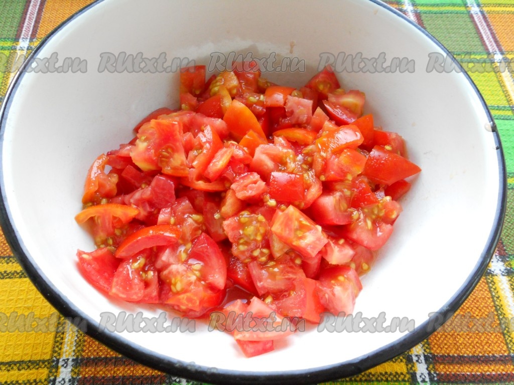Еще через 5 минут добавить помидоры. Посолить и поперчить, добавить сахар, все перемешать и обжарить оставшееся время (5 минут), после чего выставить программу "Тушение" на 20 минут. Крышку мультиварки в течение этого времени можно не открывать.